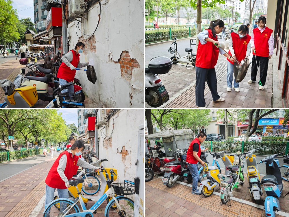 活動中,志愿者們分工明確,迅速行動。大家手持清潔工具,仔細撿拾街道上的煙頭、垃圾;將隨意停放的共享單車搬運至指定區(qū)域,整齊擺放;利用鏟子、噴壺等工具,認真鏟除墻面、電線桿上的小廣告。經過大家的共同努力,街道變得干凈整潔,共享單車停放有序,社區(qū)環(huán)境得到明顯改善。