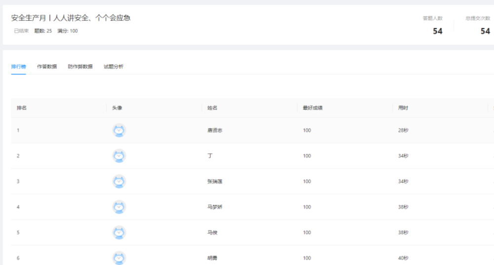 通過在線全員答題的方式,有效普及安全生產(chǎn)法律法規(guī)、應知應會常識、日常工作生活安全知識等,切實促進全員安全知識儲備和安全意識提升。