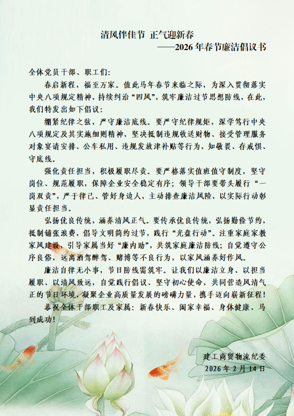 文章作者:白禮磊 文章來源:紀(jì)檢室 發(fā)布日期:2026-02-14 瀏覽次數(shù):72