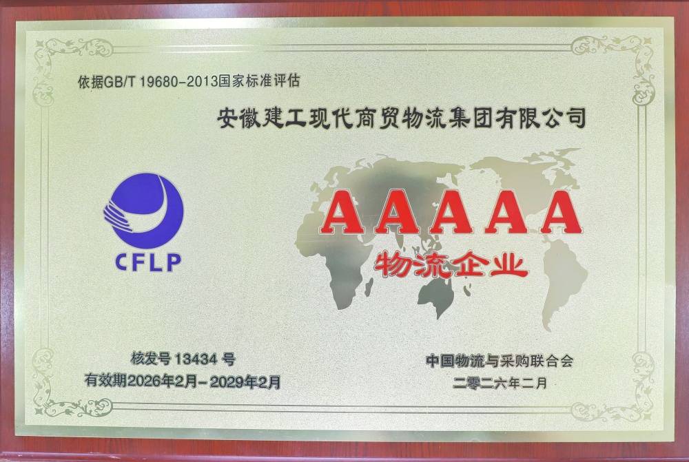 國家5A級物流企業(yè)是中國物流企業(yè)評估體系中的最高等級,本次獲評標志著公司在供應鏈綜合服務能力、規(guī)模實力和行業(yè)地位上達到國內物流行業(yè)的最高級別。公司將以躋身全國5A級物流企業(yè)為契機,依托安徽建工集團基座和全產業(yè)鏈優(yōu)勢,錨定做強商貿、做大物流目標,堅持“商貿+物流”雙輪驅動,統籌推進內、外市場協同發(fā)展,對標行業(yè)一流,高起點建設運營商貿物流一體化平臺,加快打造具有競爭力的現代物流服務品牌,為集團轉型發(fā)展、創(chuàng)新發(fā)展、高質量發(fā)展貢獻更大力量。
